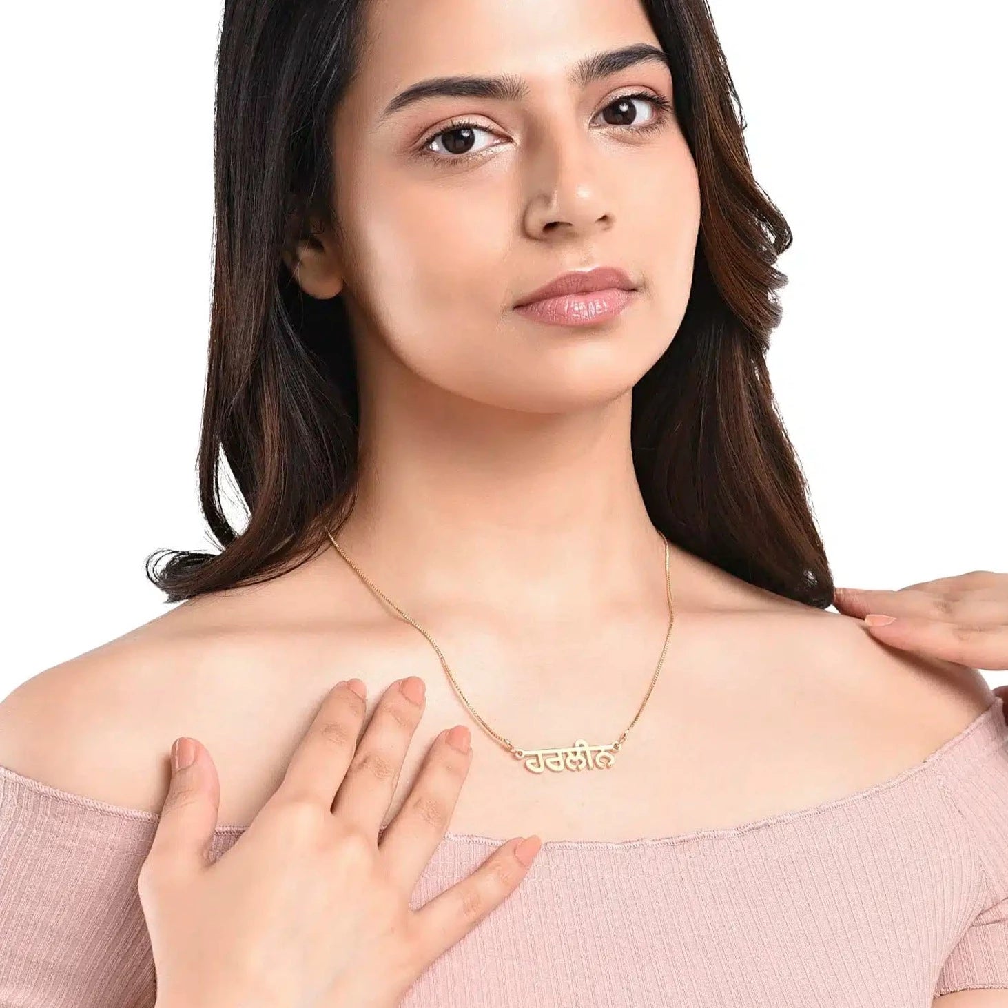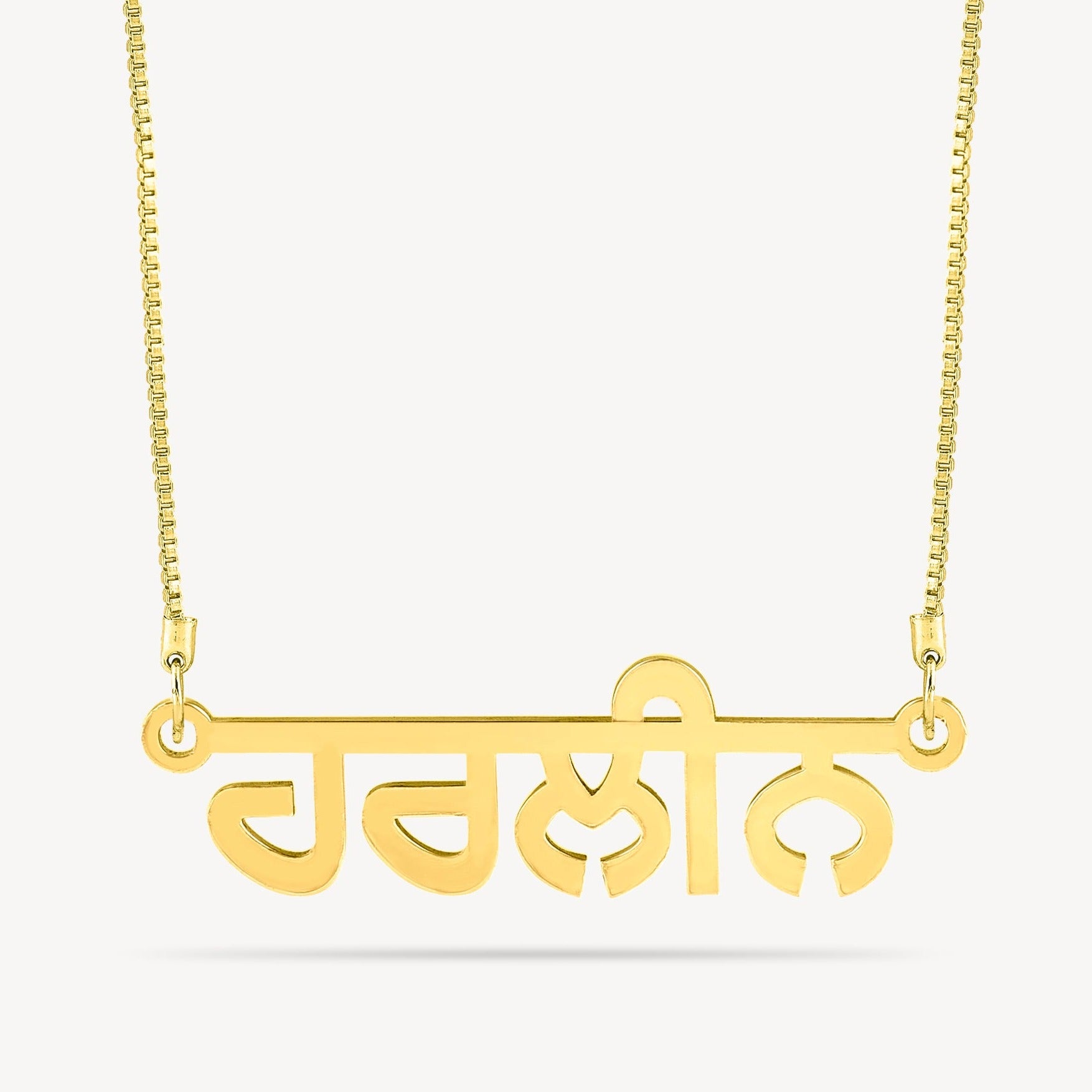 Punjabi Name Necklace,' a personalized masterpiece that pays tribute to the grace of the Punjabi script. Lovingly crafted, this necklace offers a unique way to wear your name, creating a striking and elegant accessory that celebrates the vibrant heritage and culture of Punjab. Embrace the artistry and tradition of the Punjabi script, making a statement with your name, or 'ਨਾਮ,' beautifully presented in this captivating design
