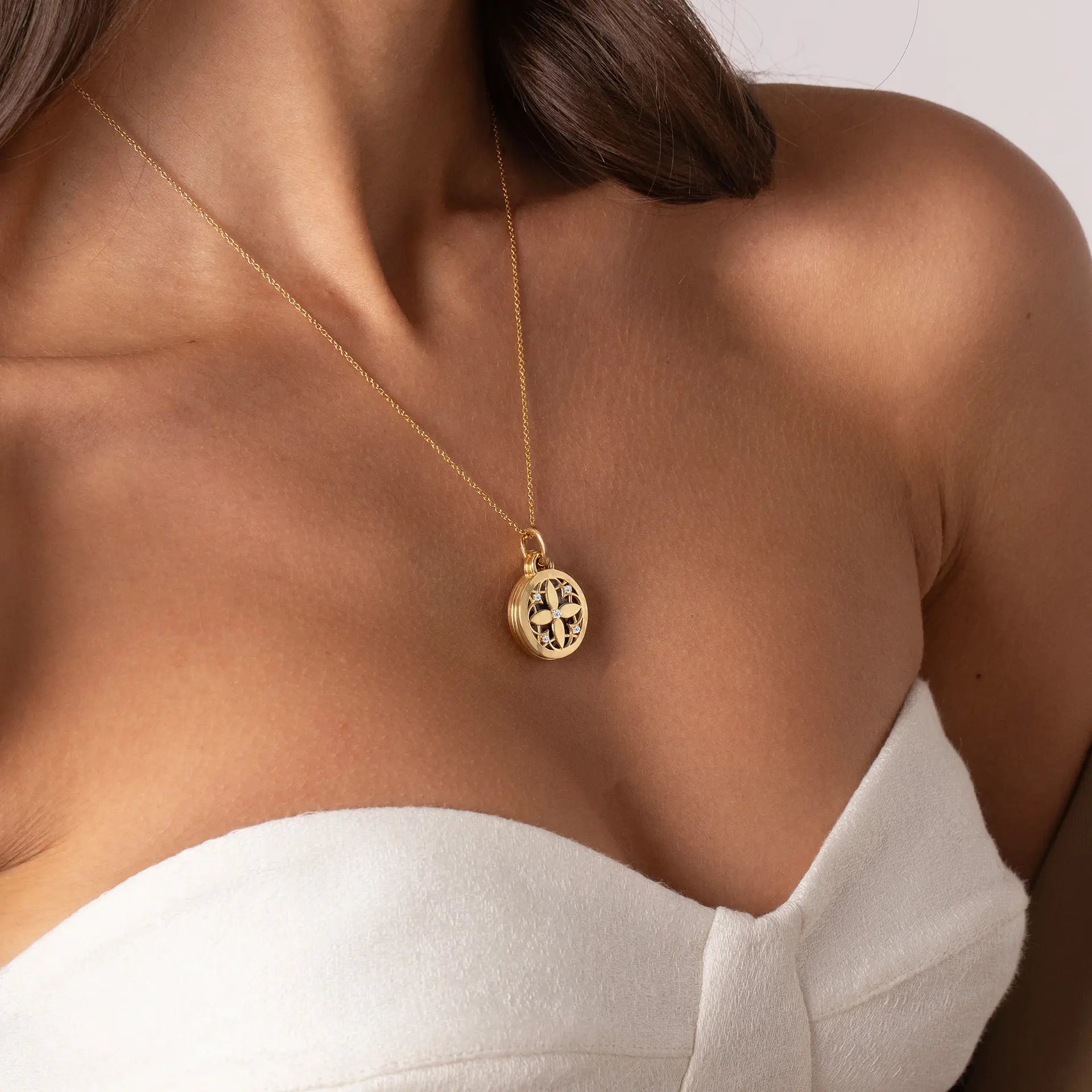 Celebrate the beauty of cherished moments with our Photo Pendant Necklace, a heartfelt ode to the love that layers our lives. This unique necklace features one photo pendant of your choosing, delicately stacked, with the top layer adorned in a mesmerising floret design. This personalised necklace intertwines memories and art, allowing her to carry the essence of her loved ones close to her heart in a truly enchanting way.