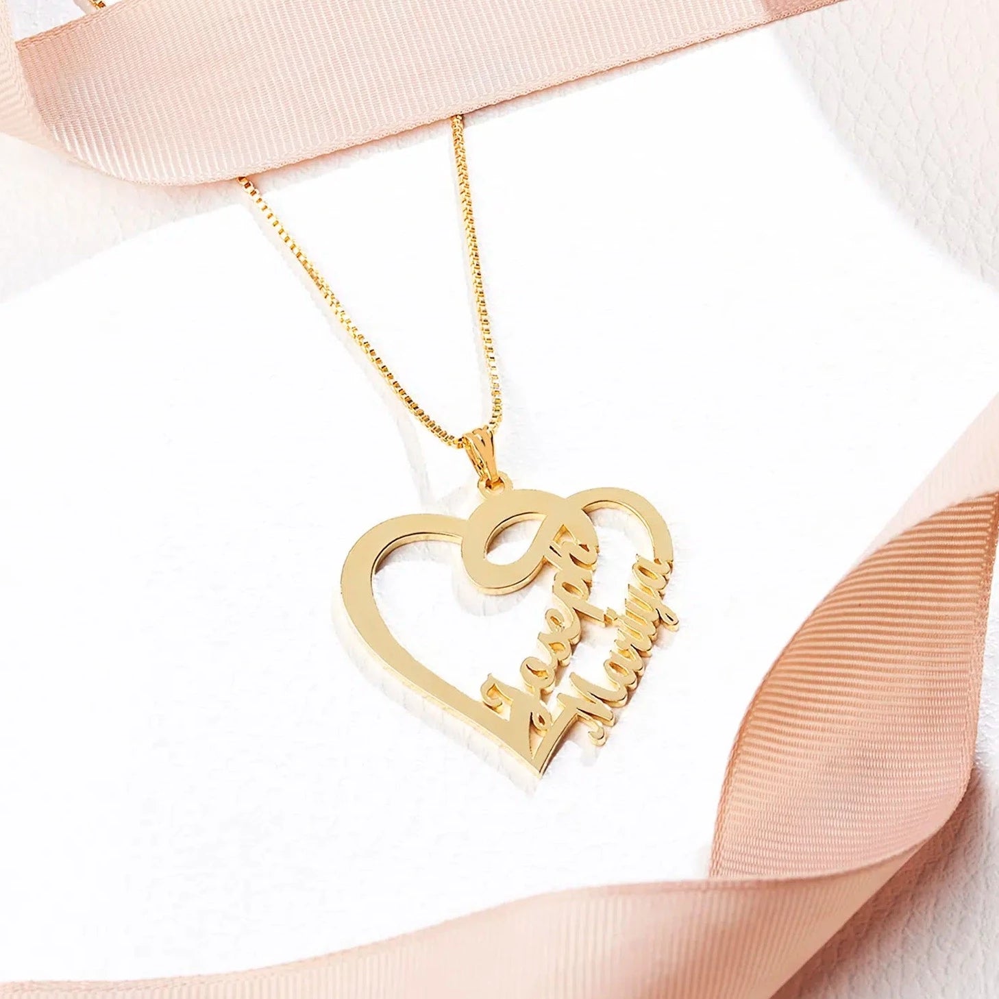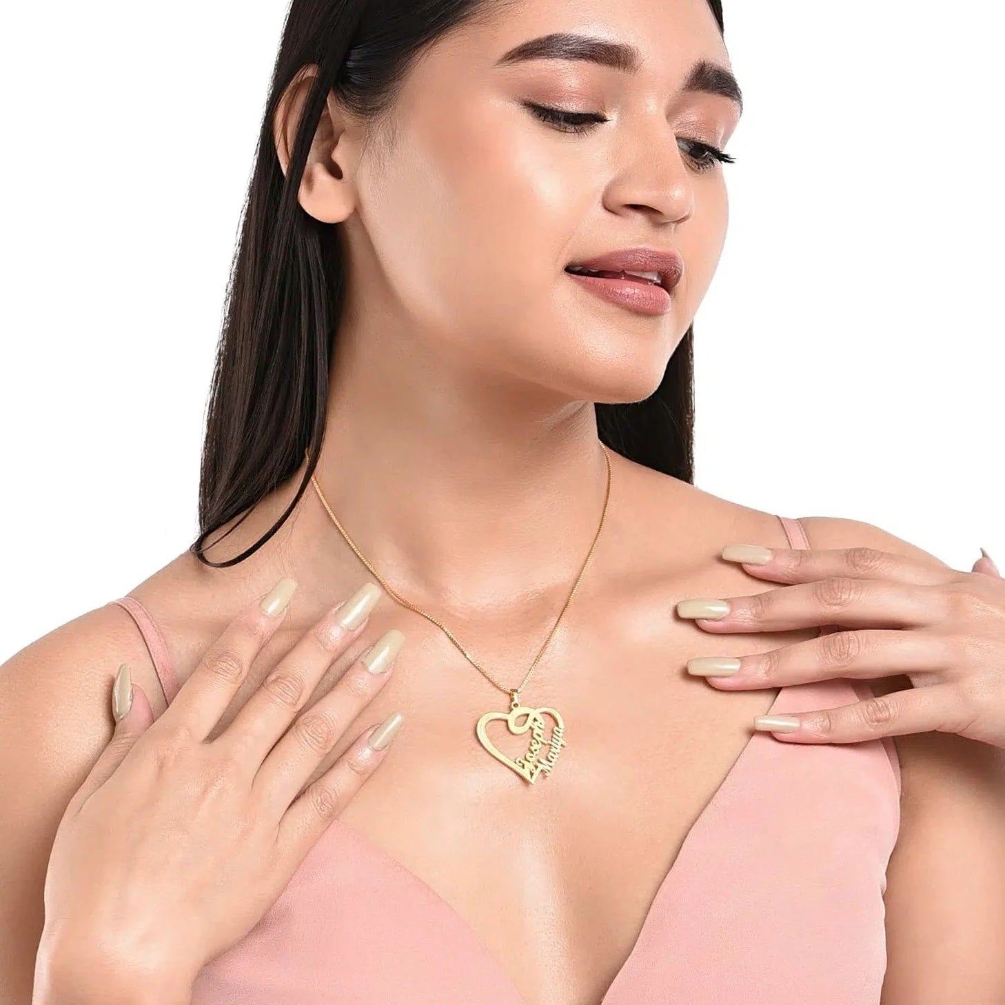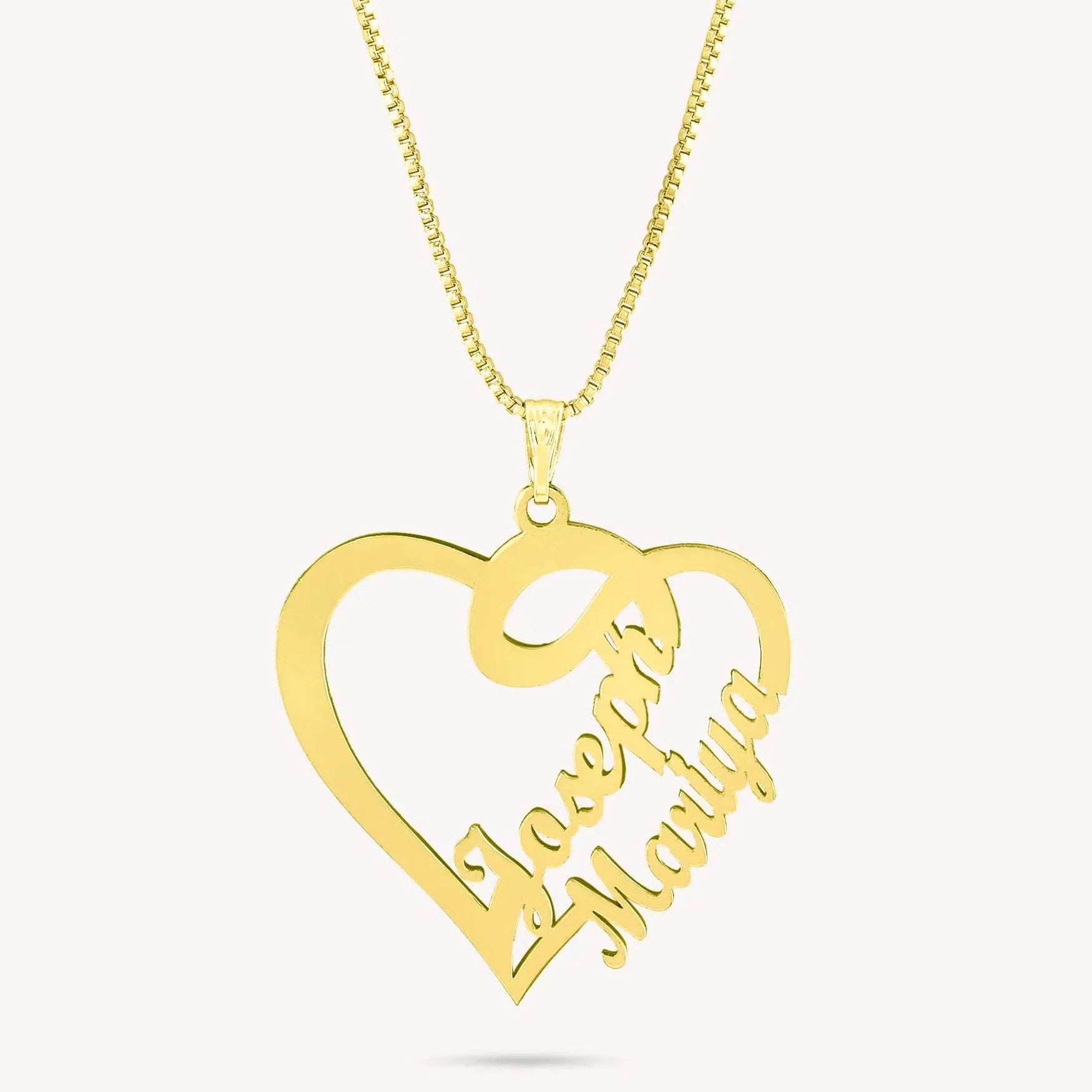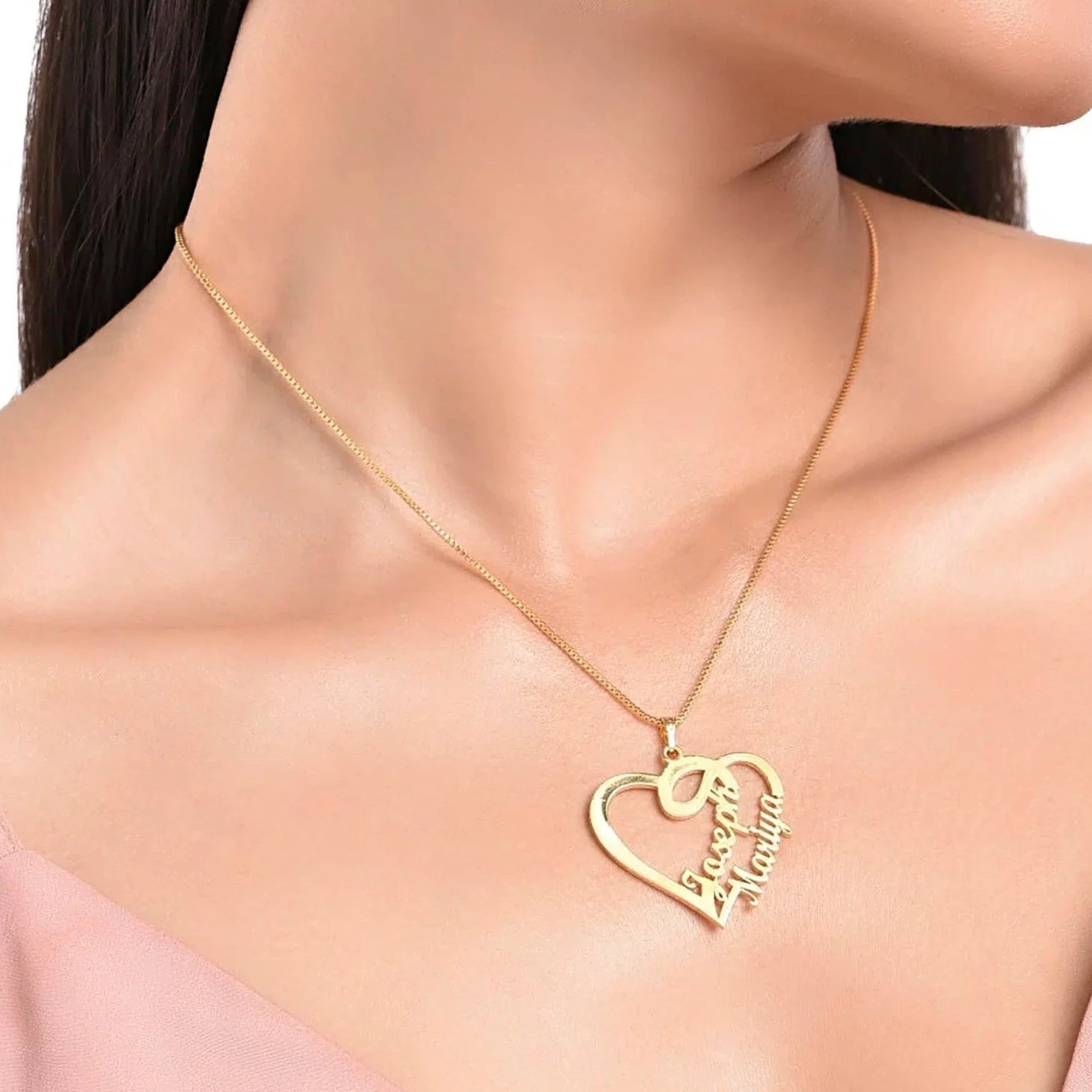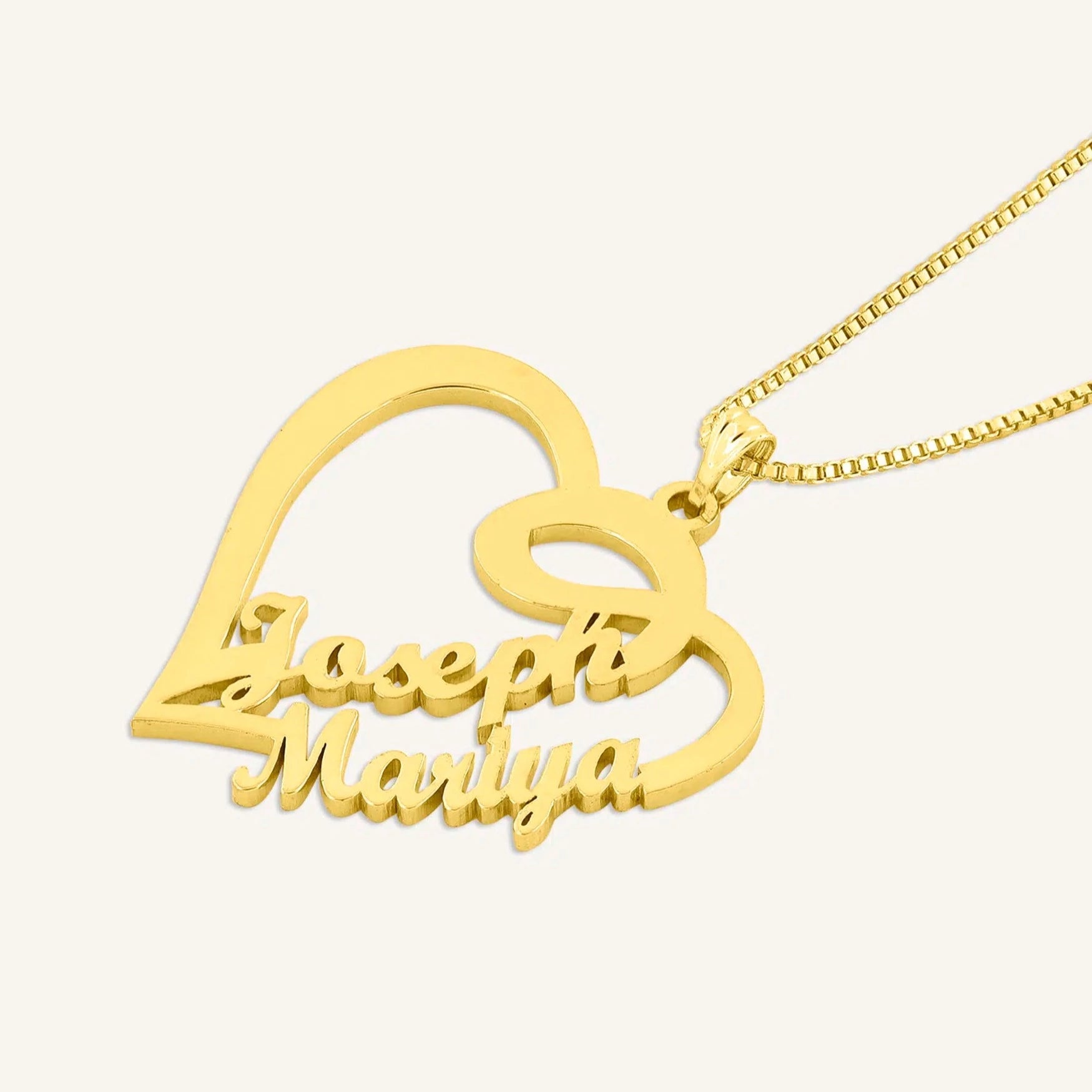 A symbol of love ‘Couple Name Necklace.’ A timeless and elegant masterpiece designed to celebrate the deep and lasting connection between two hearts. Lovingly crafted, this necklace offers a unique way to wear a reminder of your love, creating a striking and meaningful accessory. Let this necklace symbolize the bond that's as enduring as gold, making a statement of your affection and devotion.s.